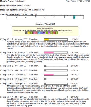 Astrology of Today - July 16, 2016 - Astrology Cafe Jul 15, 2016 by Annie Leave a Comment The Moon is in Sagittarius all day (until Sunday, July 17th, at 3:32 PM). The Moon is waxing and in its Waxing Gibbous phase. A First Quarter Moon occurred on the 11th and a Full Moon will occur on the 19th. Mars is direct and in its post-retrograde shadow until August 22nd. Times are EDT Horoscopes Aries Aries