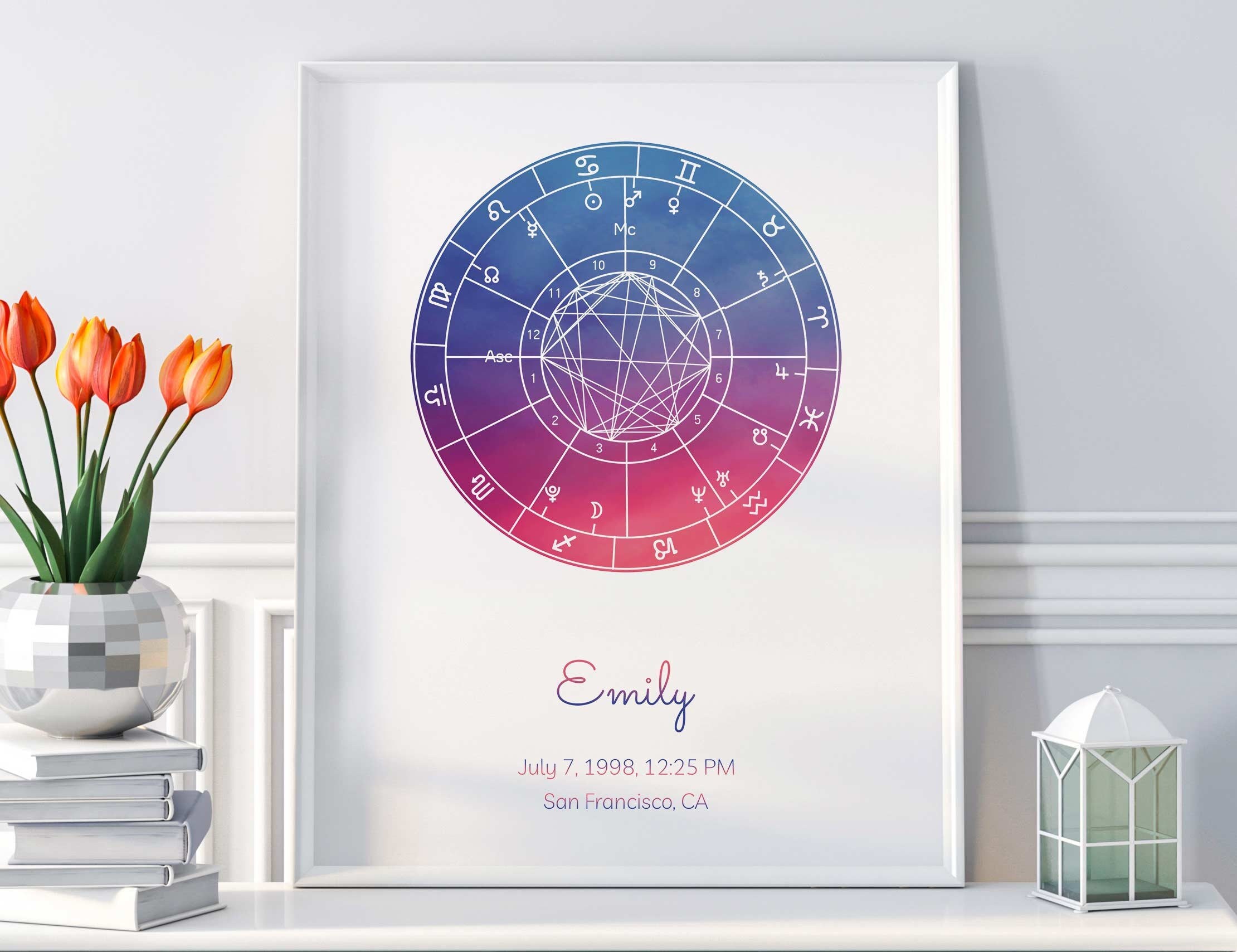 Birth Chart Calculator - Find Your Sun, Moon and Ascendant ... - Astrology A natal chart or birth chart is a map of the sky including the positions of the planets for the time that you were born. Where you are born has an impact on what is seen in the sky, e.g., if two people were born on the same day and at the same time but in a different city and country, what is seen overhead would be different. This would mean ...