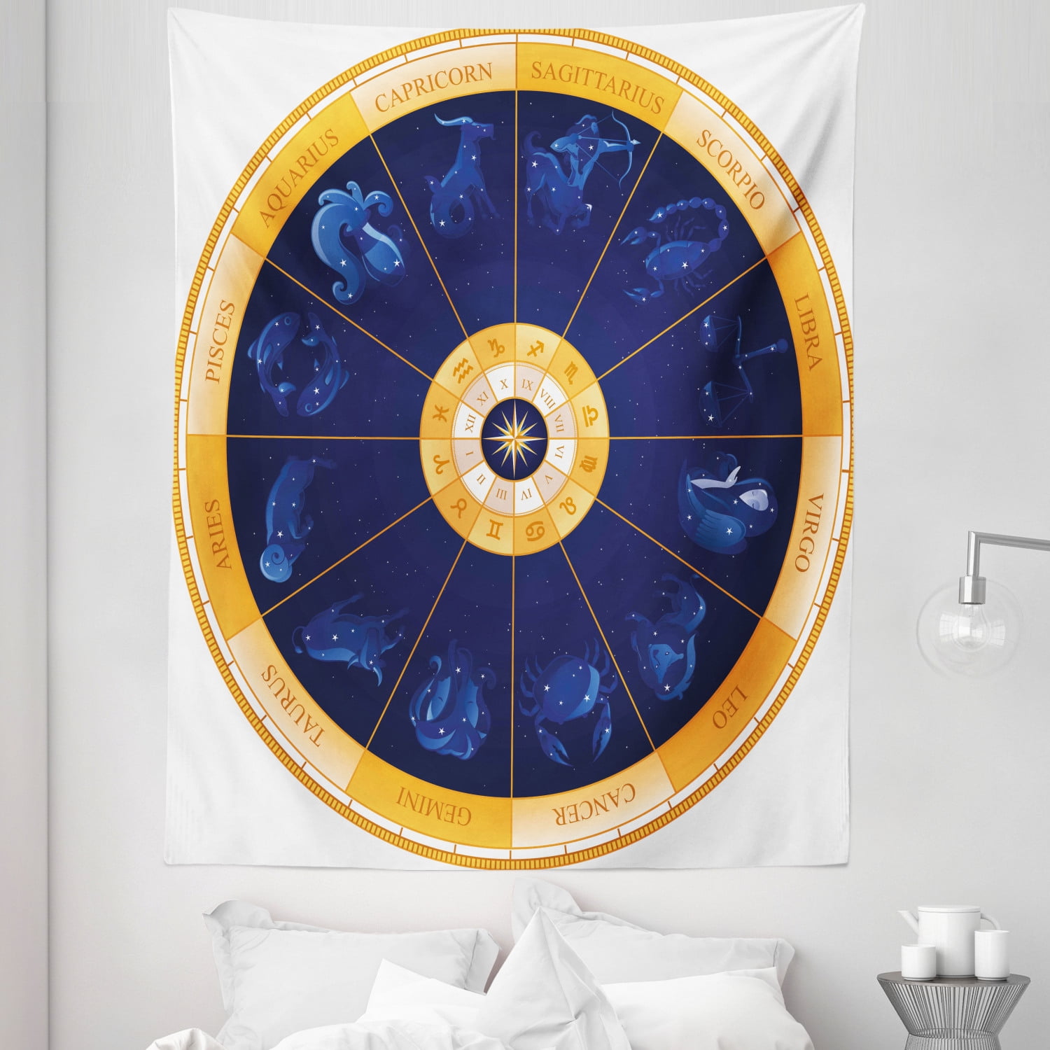 Astrology Tapestry, Horoscope Zodiac Sign in Circle Wheel Shape on Star Seem Backdrop Print, Fabric Wall Hanging Decor for Bedroom Living Room Dorm, 5 ...