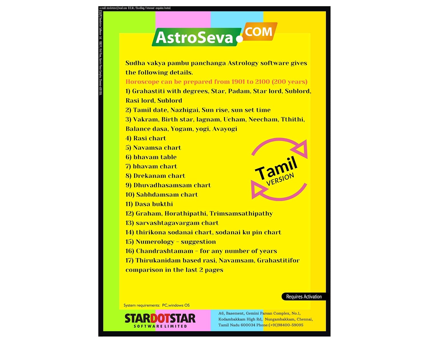 Free tamil vakya astrology software. Jathagam | ஜாதகம் தமிழில் | Tamil Horoscope by Prokerala.com Free Tamil Jathagam • ஜாதகம் Get your jathagam in Tamil and learn all about your life. This Tamil astrology software helps you create your accurate Tamil horoscope. Your free jathagam includes planetary positions ( கிரக நிலைகள்), birth chart (ஜாதக கட்டம்), cevvai dosham (செவ்வாய் தோஷம் ) & shani dasa (ஏழரை சனி) analysis and more. Language/மொழி Vakya Panchangam Tamil Astrology Software Free [REPACK] Download Tamil Vakya Panchangam is also known as Tamil Vakkiam Panchangam. Tamil Nadu Astrology Software based on Vakayam Panchangam. Download Samayam Vakkayam Horoscope Software . yperion on tamil vakayam panchangam and vakayam. Besides these Panchangam software, we also have many other software like; computer vakyam, iepal atulam vakyam. Free Tamil Jathagam Software Dowload | Download LifeSign Astro-Vision Futuretech Pvt. Ltd. had its humble beginning in 1984, and become a No.1 astrology company in India and one of the most respected names globally. Our purpose is to create long-term value through innovative solutions. Astro-Vision's range of solutions includes; astrology software, astrology apps and online astrology services. Free Tamil Astrology Software (free) download Windows version The most popular version among Free Tamil Astrology Software users is 1.0. The actual developer of the free program is Astro-Vision Futuretech Pvt. Ltd. The software lies within Home & Hobby Tools, more precisely Religion-Esoterics. We recommend checking the downloaded files with any free antivirus. From the developer: