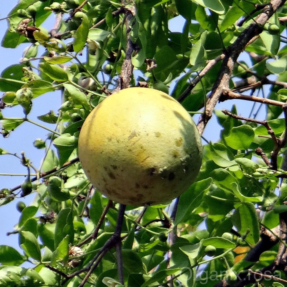 Bael tree - Green Initiative Trees to 12 m tall, deciduous; branchlets cylindric, glabrous; Leaves alternate-3-foliolate, sometimes 5 foliolate, dimorphic, leaflets subsessile, ovate-elliptic or elliptic-lanceolate, tapering at apex, oblique at base, shallowly crenate-serrate at margin, membranous, pellucid-punctate, pale green; Inflorescences axillary and terminal, racemose or corymbose, few-flowered; peduncles densely ...